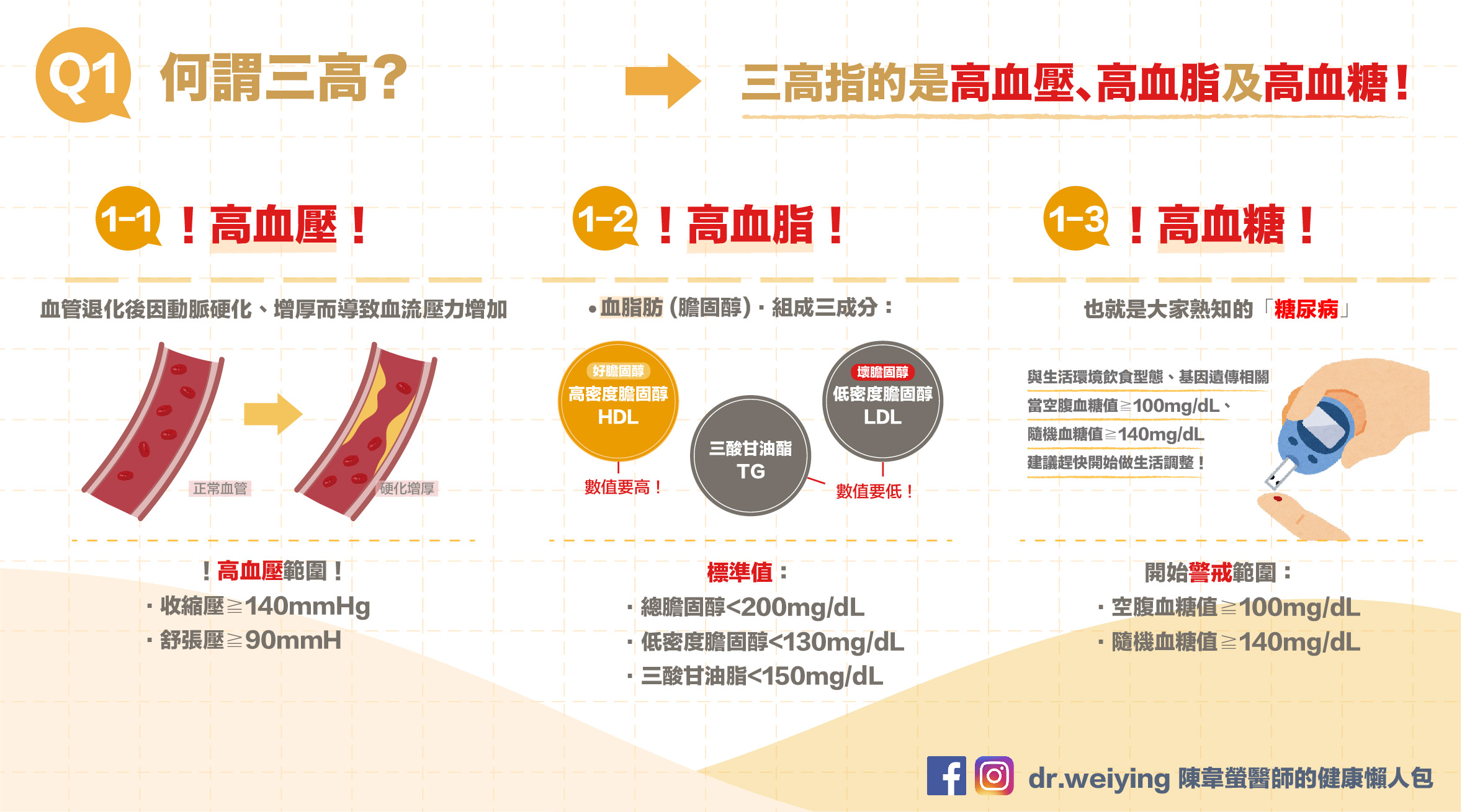 ➤ 三高指的是高血壓、高血脂及高血糖!