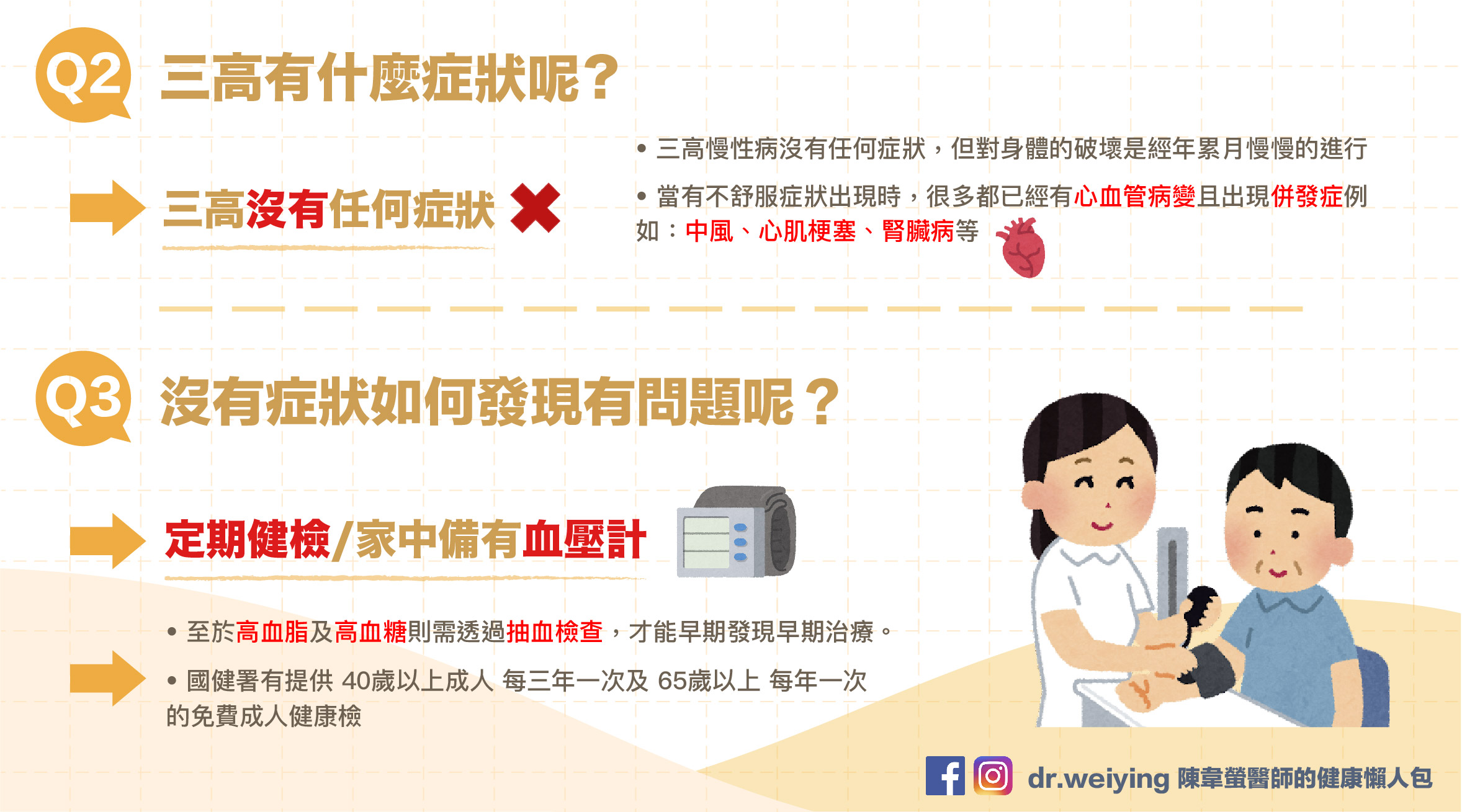 究竟三高有症狀嗎?該如何檢查跟診斷呢?就讓韋螢醫師來告訴你