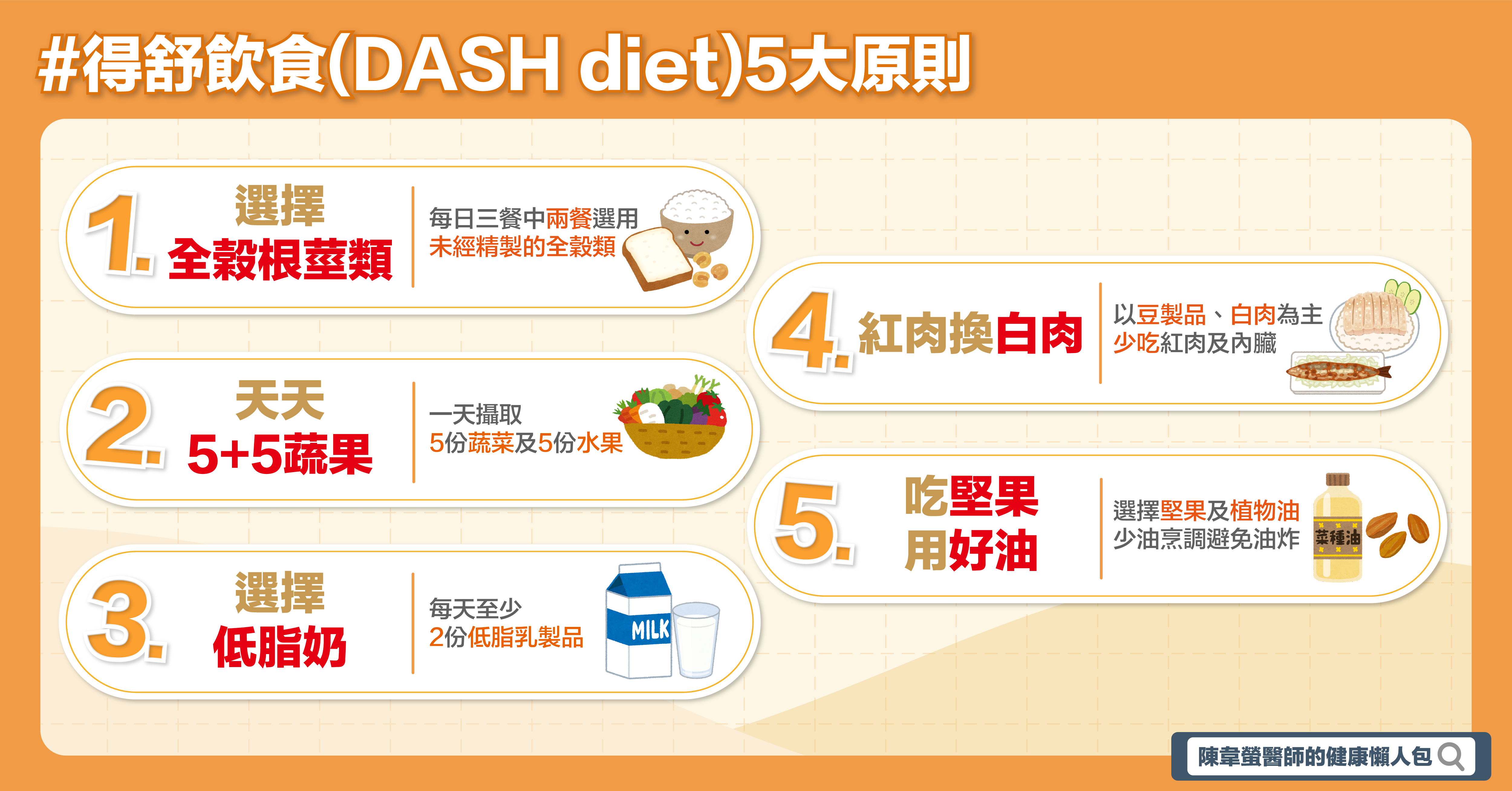 - 選擇低脂奶:每天至少2份的低脂乳製品