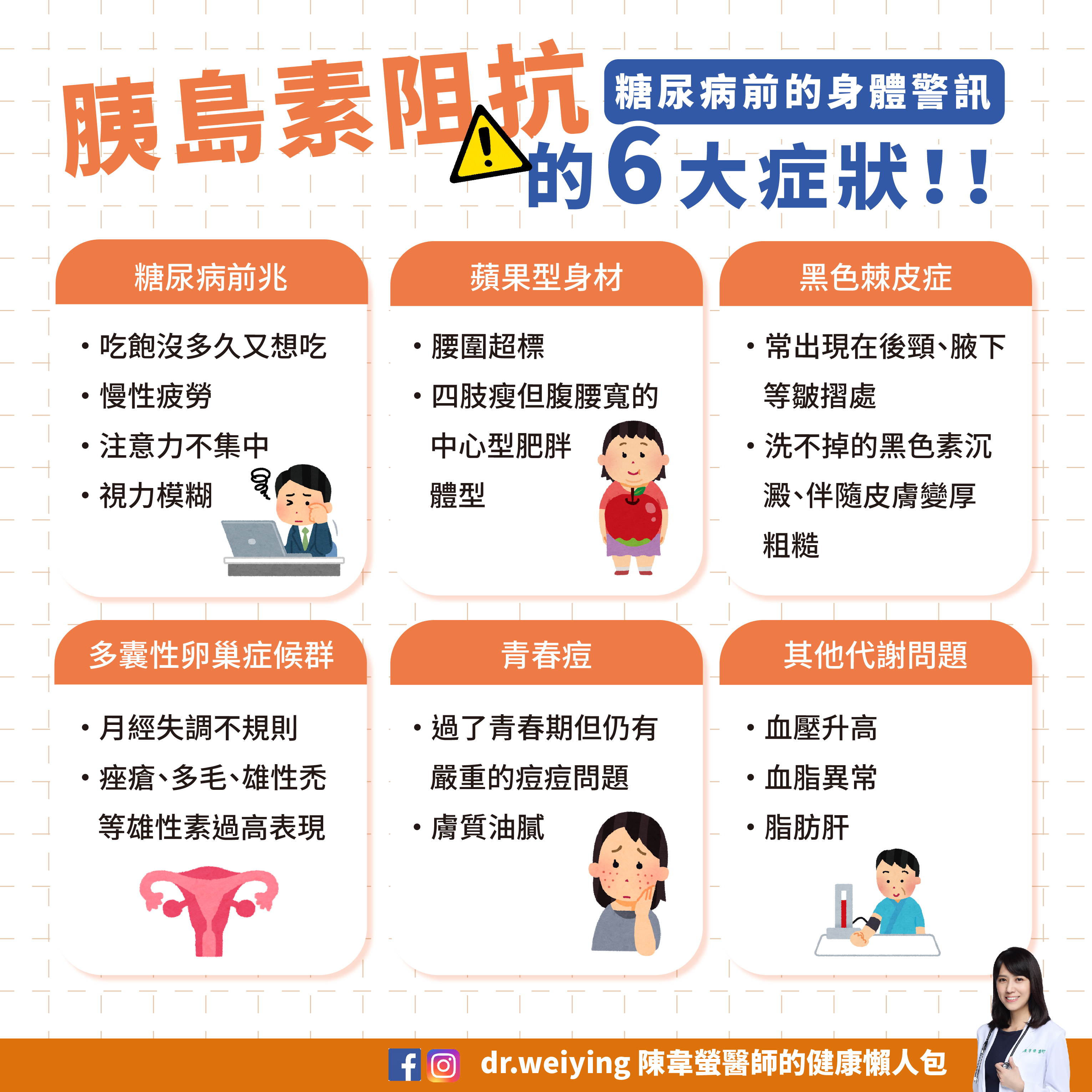 當胰島素無法有效調節血糖時,身體會出現與糖尿病相似的徵兆,包括: