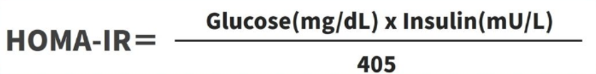 HOMA-IR = 空腹胰島素濃度 Insulin (mIU/L) × 空腹血糖濃度 Glucose (mg/dl) / 405